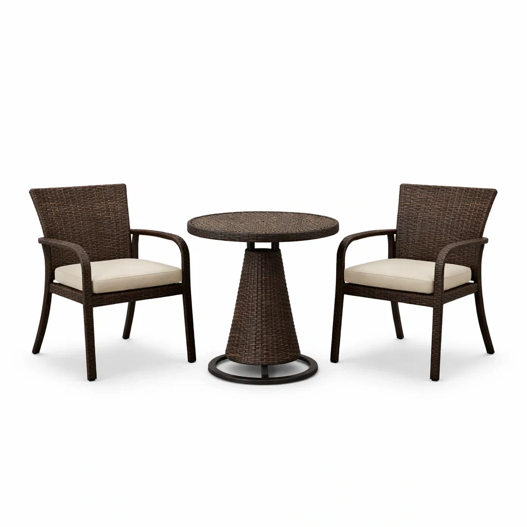 Set da relax piccolo giardino tavolo rotondo in rattan pe e 2 sedie marrone