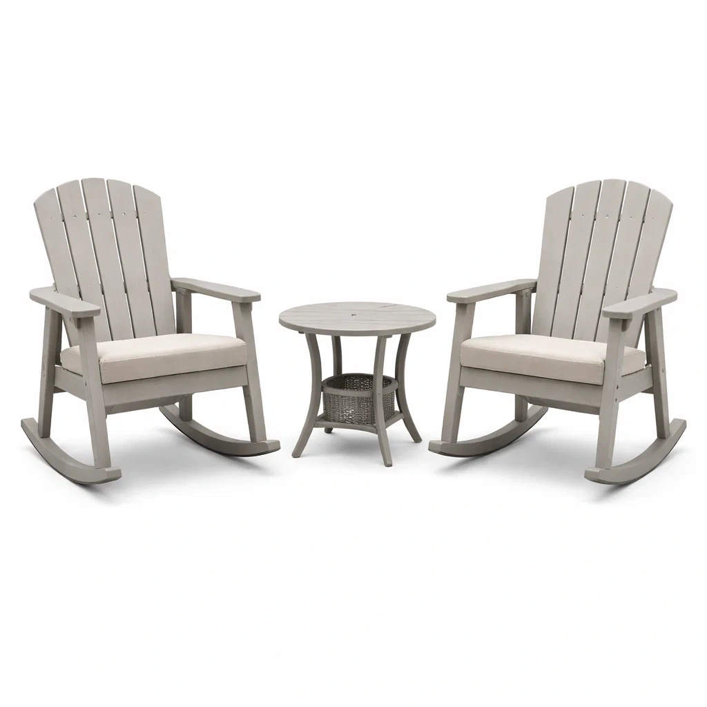 Set da relax piccolo da giardino 3 pezzi in legno con sedie a dondolo e tavolino rotondo
