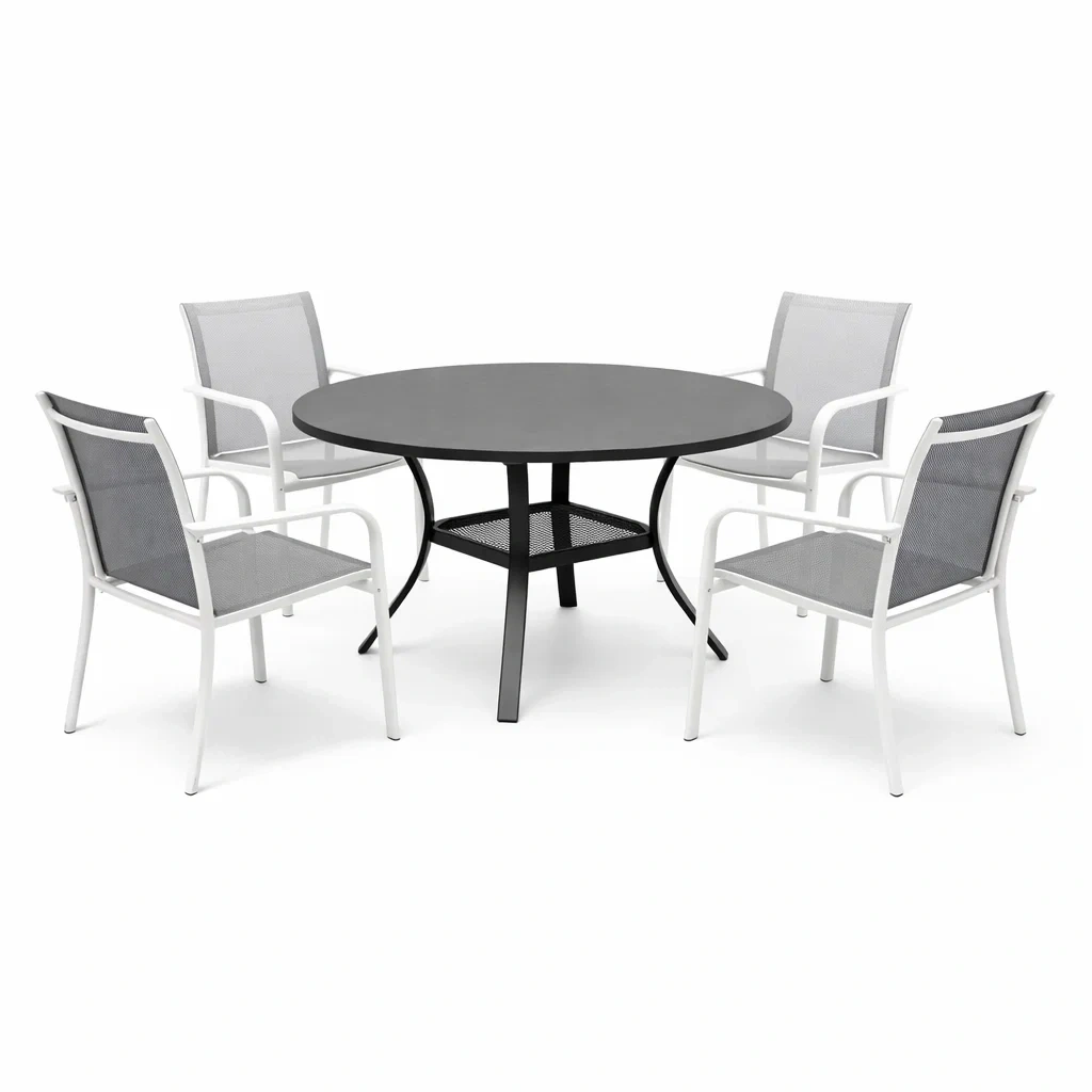 Altre caratteristiche: Set composto da 1 tavolo rotondo e 4 sedie; adatto per giardini e terrazze